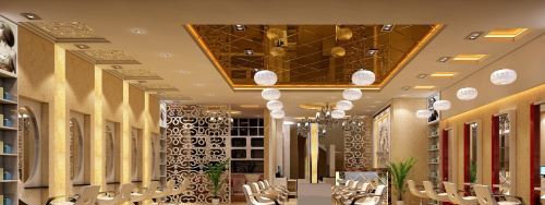 理發(fā)店的吊頂非常重要,因?yàn)轭櫩驮谙搭^時,最先看到的就是天花板。如果資金不充足,可以使天花板原有的線管等裸露出來,以顯示粗狂的原生態(tài),但是,這時燈光的選擇就極為重要,因?yàn)椴坏蹴數(shù)脑?,天頂?shù)男Ч鸵揽繜艄鈦頎I造。所以,洗頭區(qū)的吊頂可以選擇溫和燈光的精致吊燈。在大廳就可以使用相對明亮點(diǎn)的。